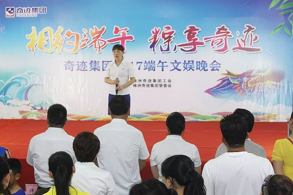 晚會伊始,集團(tuán)總經(jīng)理楊建輝發(fā)表了熱情洋溢的講話。他說:企業(yè)在這中華民族的特別節(jié)日里舉行晚會具有重要意義,端午節(jié)是中華民族為紀(jì)念偉大的愛國詩人屈原而由民眾自發(fā)創(chuàng)立的,流傳千年,已演變成中華民族傳承愛國主義精神的載體。奇跡集團(tuán)舉辦晚會,一是為弘揚(yáng)愛國主義精神,更是為把愛國主義精神融合到員工的日常工作和生活中去,當(dāng)然也會起到豐富全體員工精神生活的作用。我們的員工在日復(fù)一日、年復(fù)一年的平凡工作中創(chuàng)造了不無平凡的業(yè)績,這也是奇跡集團(tuán)能從無到有,并成長為一家株洲市知名企業(yè)的重要原因。所以他們理應(yīng)享有多姿多彩的生活。楊總在講話的最后預(yù)祝晚會圓滿成功。